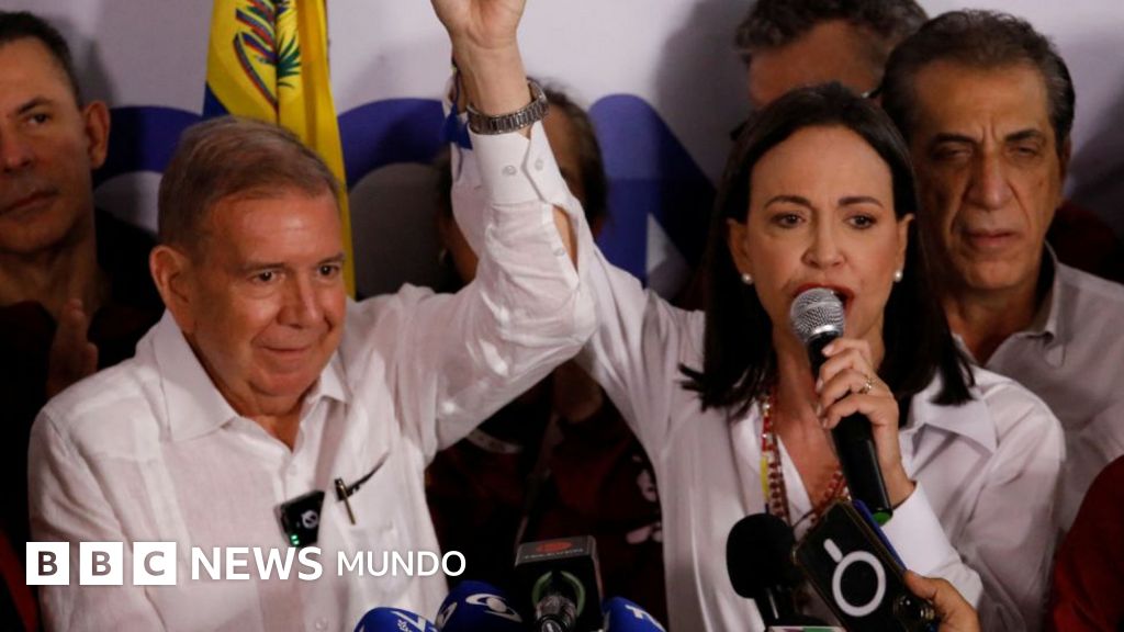 La líder de la oposición de Venezuela, María Corina Machado, declaró vencedora a la oposición a pesar de que minutos antes Nicolás Maduro celebrara su victoria anunciada por el Consejo Nacional Electoral.